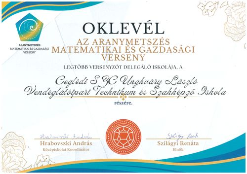 Sikeres szereplés az Aranymetszés Matematikai és Gazdasági Versenyen.